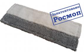 Последняя разработка Росмоп, не имеющая аналогов среди зарубежных и отечественных компаний – моп микрофибра комбинированный (артикул MMK). Он состоит из двух материалов – щеточной агрессивной структуры имеющей грубые волокна и универсального белого микроволокна имеющего сверх тонкие волокна. Оба материала расположены продольно.